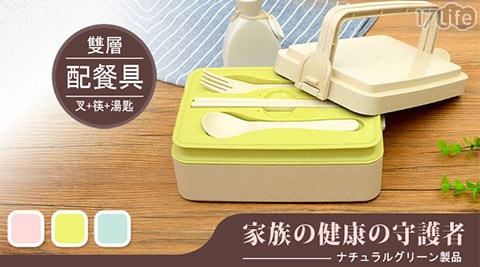 17life宅配商品手提式可微波雙層小麥便當餐具組"即買即用-限時搶購